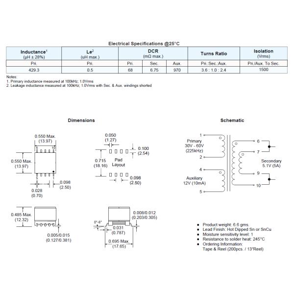 Product name : EP13 EPC3789G-LF SMPS PoE Forward Transformer